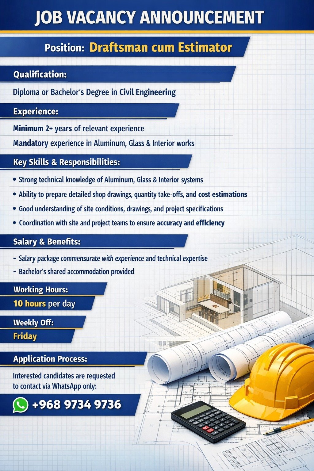 Salary & Benefits: OMR 150+, Free Food & Accommodation