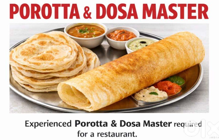 മസ്കറ്റിലെ ഒരു പ്രശസ്ത റസ്റ്റോറന്റ് ഗ്രൂപ്പിലേക്ക് പൊറോട്ട, ദോശ, ചപ്പാത്തി തുടങ്ങിയവ തയ്യാറാക്കാൻ അറിയുന്നവ.....