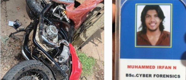 അപകടം എതിരെ മറ്റൊരു കാർ വരുന്നത് കണ്ട് കണ്ടെയ്നർ വേഗത്തിൽ ബൈക്കിനെ മറികടക്കുന്നതിനിടെ.