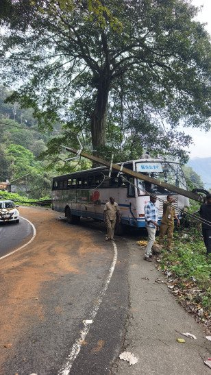 എറണാകുളത്തുനിന്നും കുമളിയിലേക്ക് പോയ കെഎസ്ആർടിസി ബസ് മഴയിൽ റോഡിൽ തെന്നി മരത്തിൽ ഇടിക്കുകയായിരുന്നു.