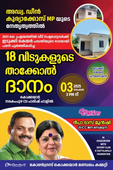 റോട്ടറി ഡിസ്ട്രിക്ട് ഗവർണ്ണർ ബിജോഷ് മനുവേൽ മുഖ്യ പ്രഭാഷണം നടത്തും.