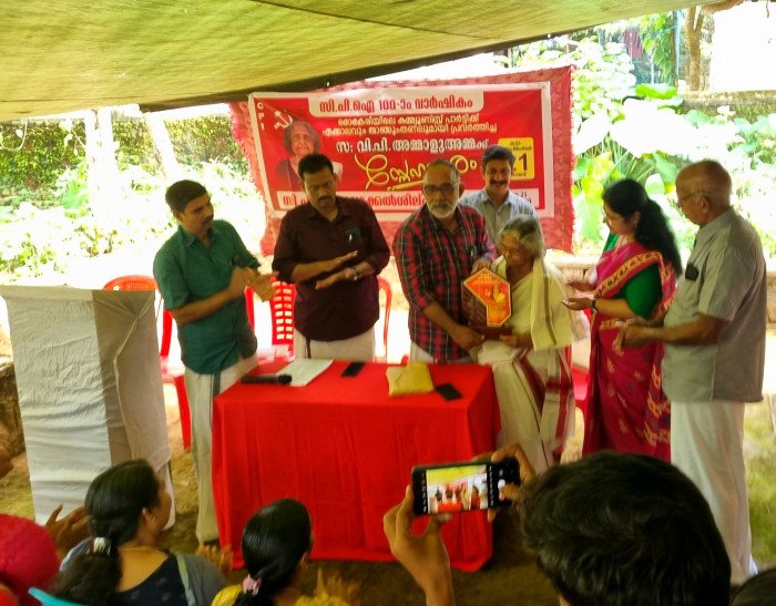 മൊകേരി : വിപി അമ്മാളു അമ്മയെ സി പി ഐ ആദരിച്ചു. സി പി ഐ രൂപം കൊണ്ടതിന്റെ നൂറാം വാർഷികാഘോഷങ്ങളുടെ ഭാഗമായി മൊകേരിയിൽ സി പി ഐ ക്ക് താങ്ങും തണലുമായി നിലകൊണ്ട 94 വയസ്സ് പിന്നിട്ട വിപി അമ്മാളു അമ്മയെ മൊകേരിയിൽ ആദരിച്ചു.