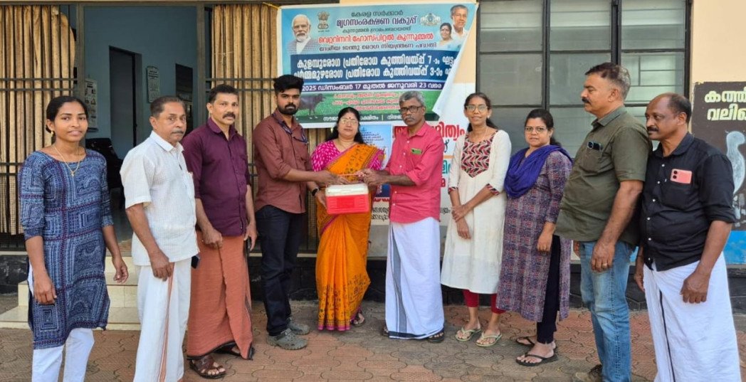 കേരള സംസ്ഥാന സർക്കാർ മൃഗസംരക്ഷണ വകുപ്പ്. ജന്തു രോഗ നിയന്ത്രണ പദ്ധതി, കുളമ്പ് രോഗ പ്രതിരോധ കുത്തിവെപ്പ് പരിപാടിയിൽ വെറ്റിനറി സർജൻ ഡോ: പി.കെ. ഷൈന സ്വാഗതം പറഞ്ഞു ഗ്രാമപഞ്ചായത്ത് പ്രസിഡന്റ് കെ. ടി ചന്ദ്രൻ ഉൽഘാടനം നിർവഹിച്ചു.