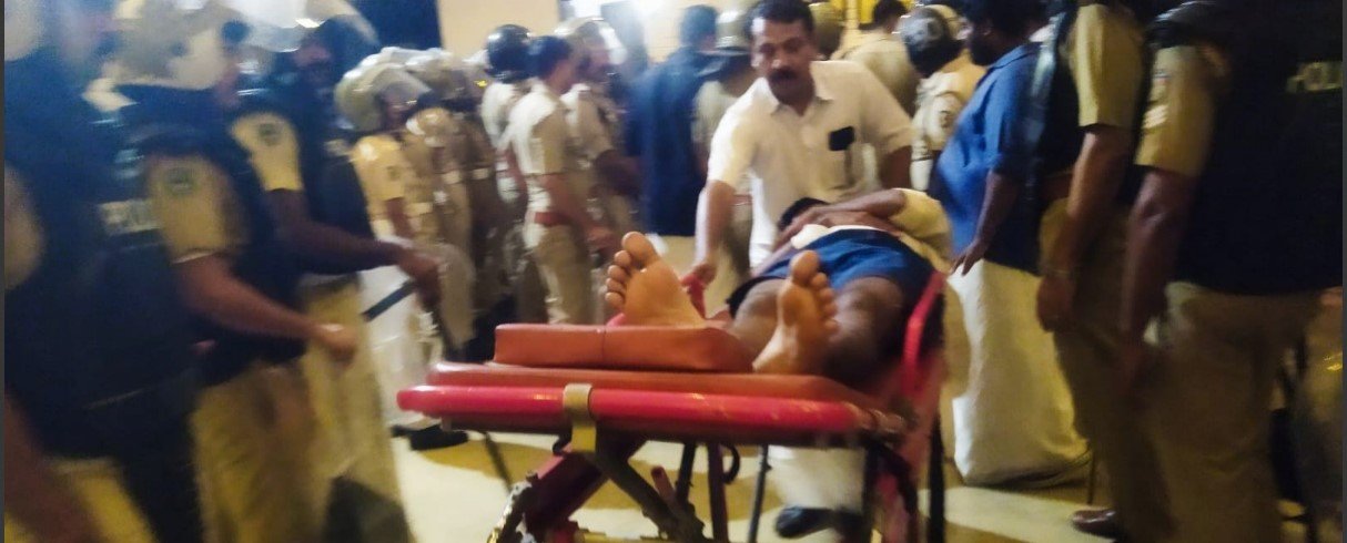 പരിക്കുപറ്റിയ യുഡിഎസ്എഫ് പ്രവർത്തകനെ പെരുവള്ളൂർ ബ്ലോക്ക് കോൺഗ്രസ് കമ്മിറ്റി പ്രസിഡണ്ട് ഗഫൂർ പള്ളിക്കൽ ആംബുലൻസിലേക്ക് മാറ്റുന്നു.