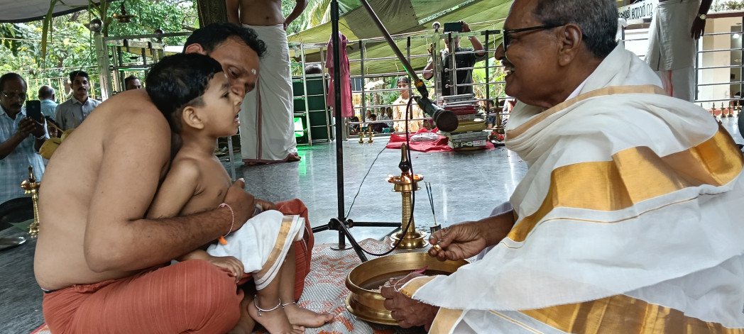 പ്രശസ്ത മലയാളഭാഷ അധ്യാപകൻ ടി.പി.നാരായണൻ മാസ്റ്റർ കുരുന്നുകൾക്ക് ഹരിശ്രീ കുറിച്ചു കൊടുത്തു