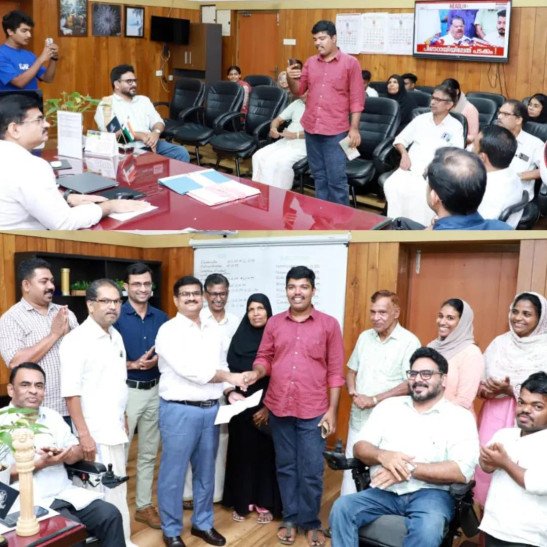 'ഒപ്പം' പദ്ധതി വഴി സർക്കാർ ജോലി ലഭിച്ച ഭിന്നശേഷിക്കാരനായ മുഹമ്മദിനെ ജില്ലാ കളക്ടർ അനുമോദിച്ചു