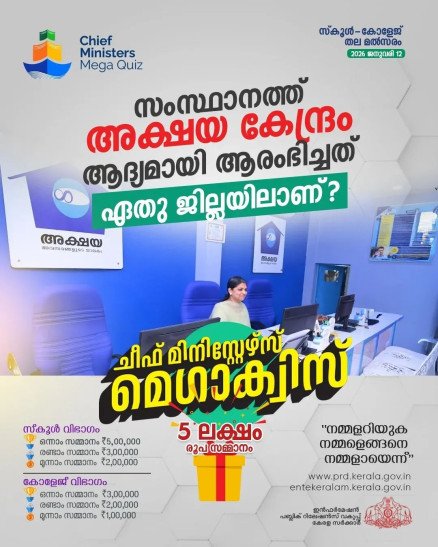 ചീഫ് മിനിസ്റ്റേഴ്സ് മെഗാ ക്വിസ്: പ്രാഥമികതല മത്സരങ്ങളുടെ ഒരുക്കങ്ങള് പൂര്ത്തിയായി
