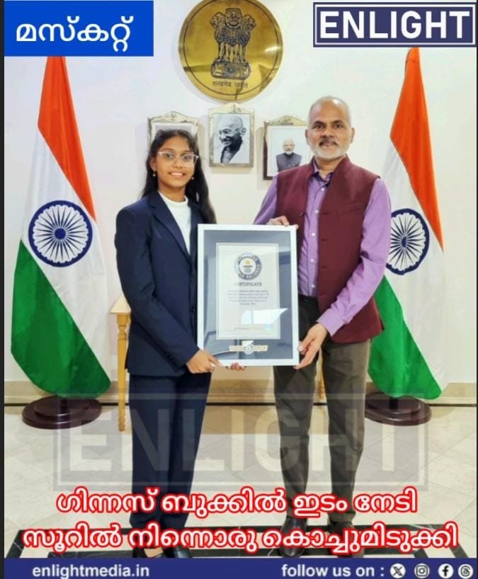 സൂർ ഇന്ത്യൻ സ്കൂൾ ഏഴാം ക്ലാസ് വിദ്യാർഥിനിയായ ശിവന്യ ഏഷ്യ ബുക്ക് ഓഫ് റെക്കോർഡും, ഇന്ത്യ ബുക്ക് ഓഫ് റെക്കോർഡും നേ....