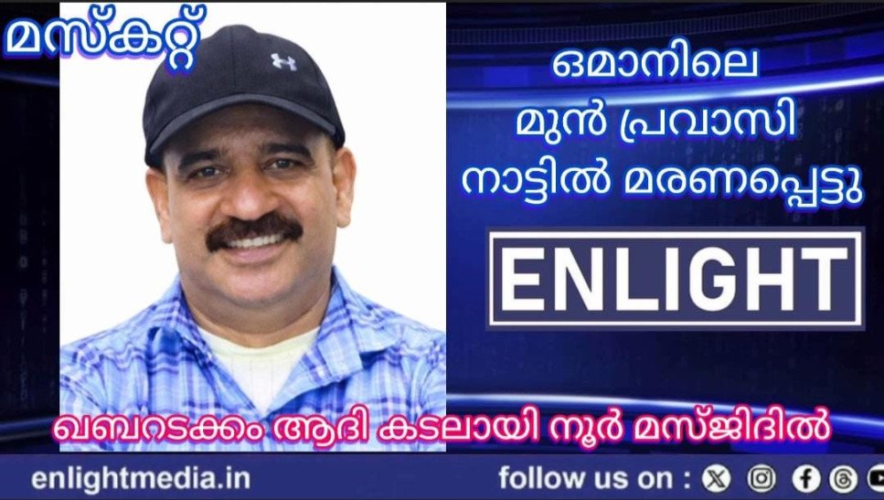 ⭕⭕⭕⭕⭕⭕⭕⭕⭕ ഗൾഫ് വാർത്തകൾക്കായി https://enlightmedia.in/news/category/gulf https://www.facebook.com/MalayalamVarthakalNews?mibextid=kFxxJD ഗൾഫ് വാർത്തകളും, ജോലി ഒഴിവുകളും അറിയുന്നതിനായി വാട്സ്ആപ് ഗ്രൂപ്പിൽ ജോയിൻ ചെയ്യുക: https://chat.whatsapp.com/B9L2Cp0r8se1VAMEI9nTFl ⭕⭕⭕⭕⭕⭕⭕⭕⭕ For: News & Advertisments +968 95210987 / +974 55374122 ⭕⭕⭕⭕⭕⭕⭕⭕⭕