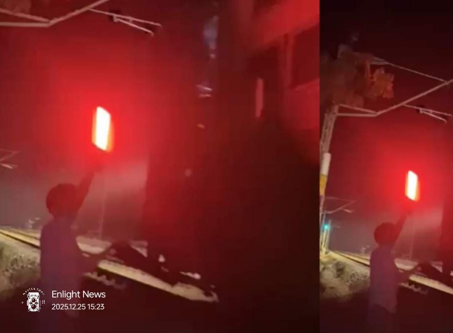 ചുവപ്പ് സിഗ്നൽ കാട്ടിയാണ് വിദ്യാർത്ഥികൾ ട്രെയിൻ തടഞ്ഞത്