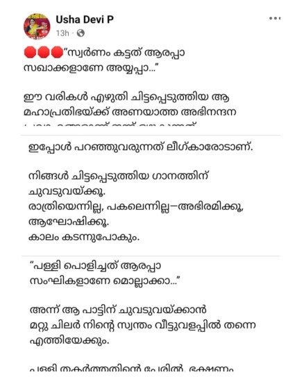 തങ്ങളില്ലെങ്കിൽ നാട്ടിൽ മുസ്ലിംകൾക്ക് ജീവിക്കാൻ സാധിക്കില്ല എന്ന സന്ദേശം നൽകുന്ന പോസ്റ്റ് ഇടതു ഹാന്റിലുകളിൽ വ്യാപകമായി പ്രചരിക്കുന്നുണ്ട്